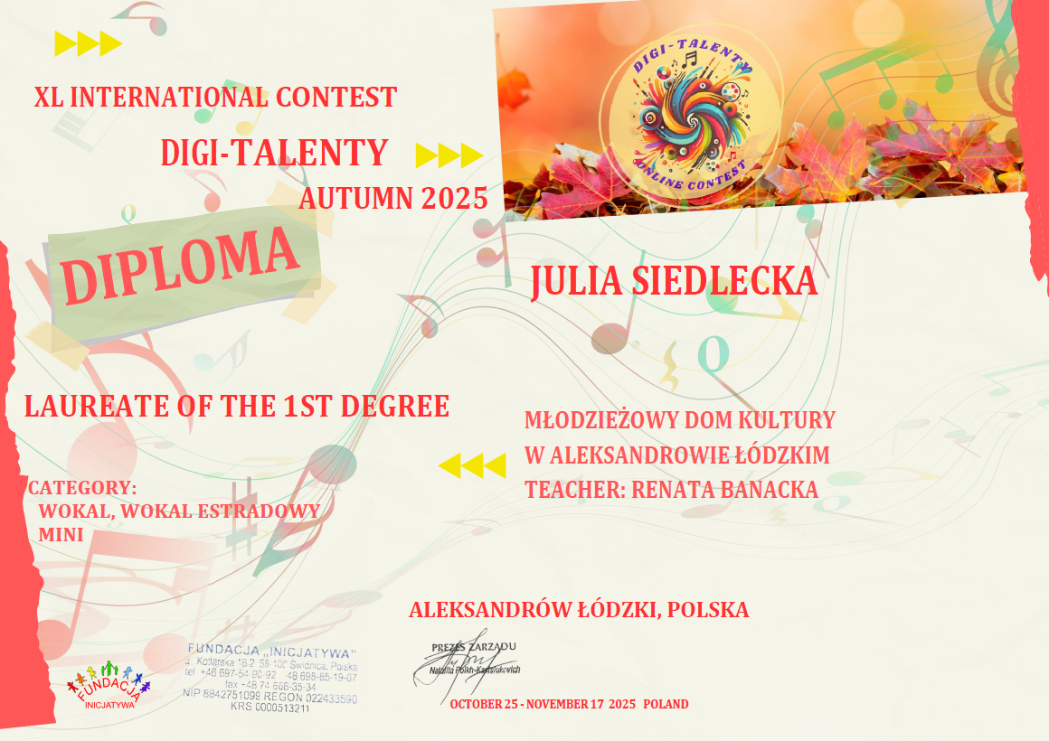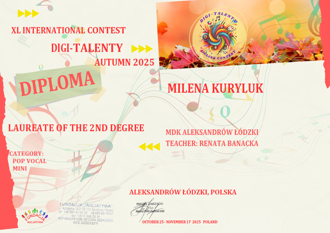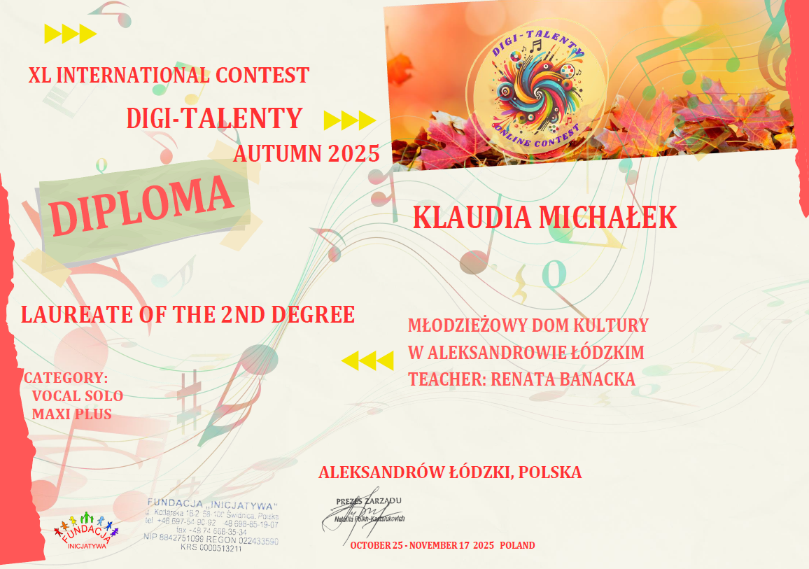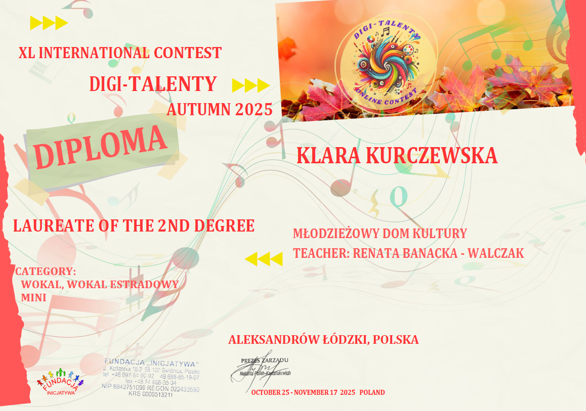 Serdecznie gratulujemy uczestnikom kół Studio Piosenki i Zespół Groszki tak wspaniałych wyników w konkursie międzynarodowym!